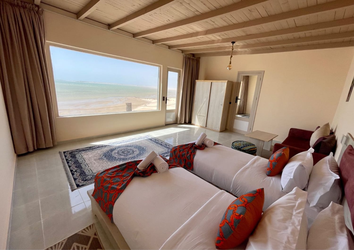 Ton havre de paix sera l'Hôtel Paraiso, niché dans un cadre spectaculaire entre les dunes dorées du désert et les eaux cristallines de l'océan Atlantique.